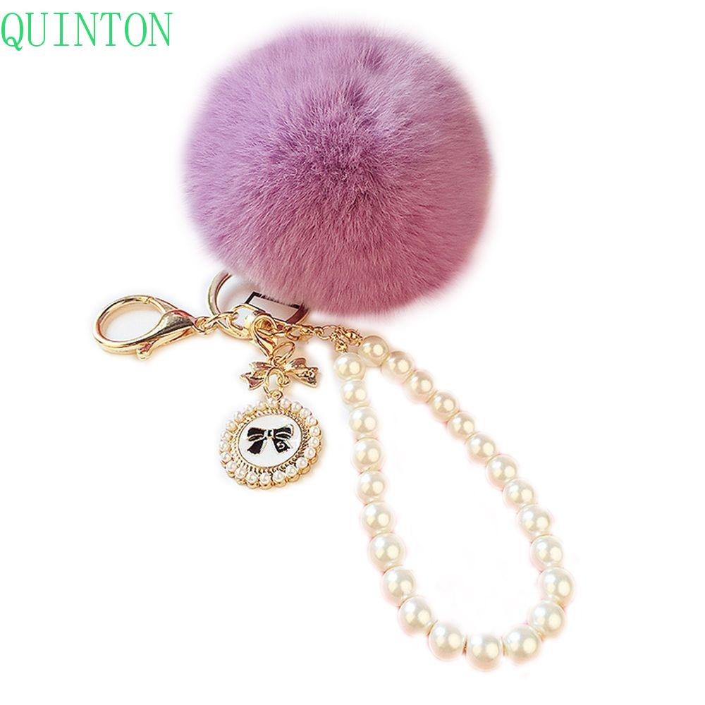 Detail QUINTON Gantungan Kunci Hadiah Asli Bola Mutiara Panas Key Ring Pendant Mobil Chic Bulu Kelinci