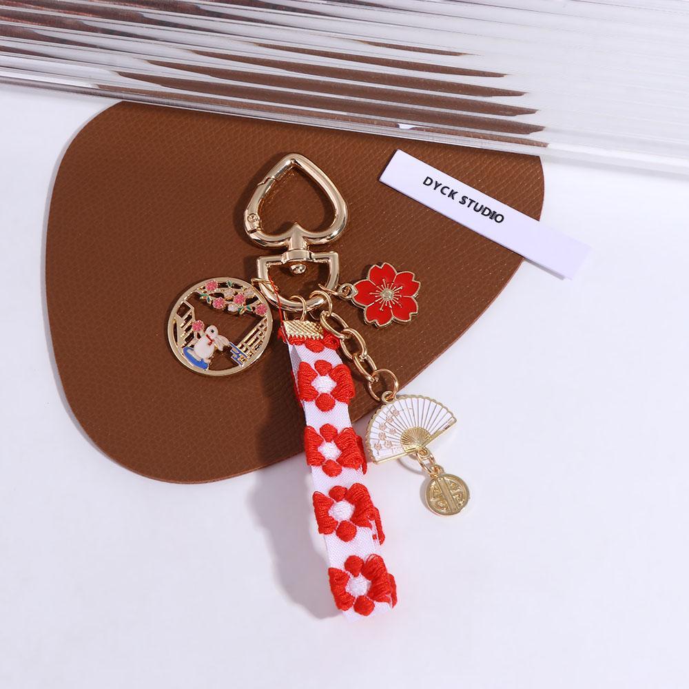 Detail QUINTON Gantungan Kunci Mobil Liontin Gaya Korea Pasangan Kipas Mutiara Lucu Kartun Kelinci Keychain