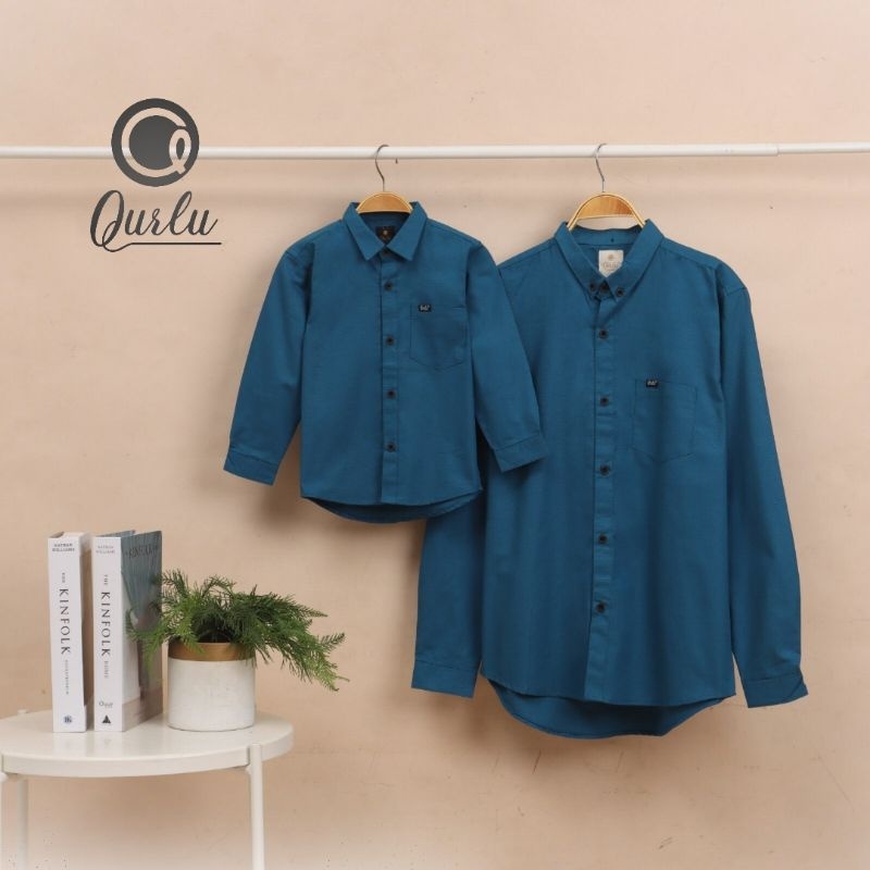 Gambar produk Qurlu - Kemeja KERAH FORMAL dewasa/anak warna biru INDIGO (bisa couple ayah dan anak)