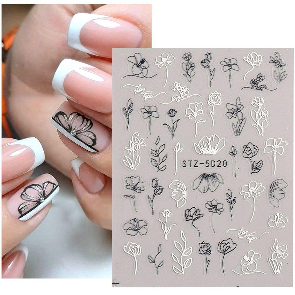 Kuantitas: 1 Pc: 1 Pc Paket: 1 pc x 5D Stiker Kuku Stiker Kuku 5D Bunga Terukir Hitam Putih Kupu-kupu Daun Pesona Stiker Timbul Dekorasi Perekat Manikur Bertekstur