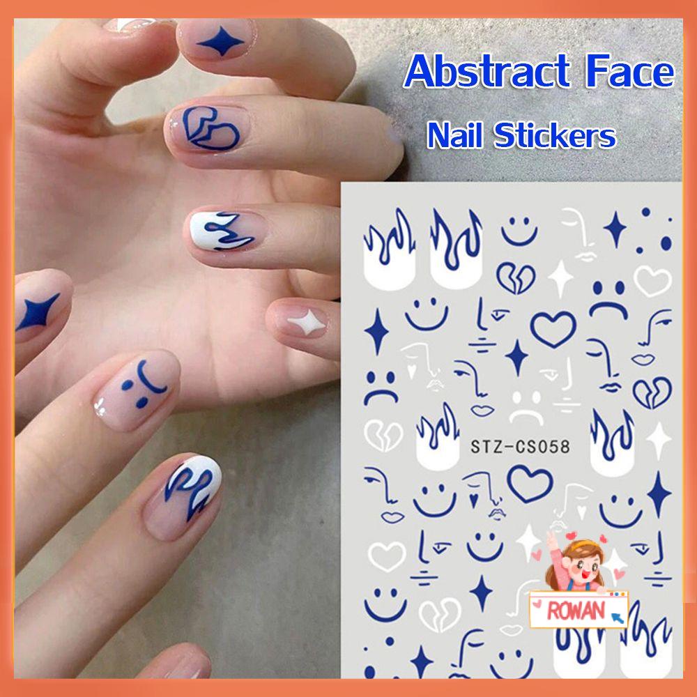 Desain: Abstrak Horror Abstrak Kemasan: 1 pc Stiker Kuku 3D Stiker Kuku Abstrak Wajah Seni Kuku Deco Api Api Klein Biru Manikur DIY Cool Boy Perekat Stiker Pria Wanita Baru
