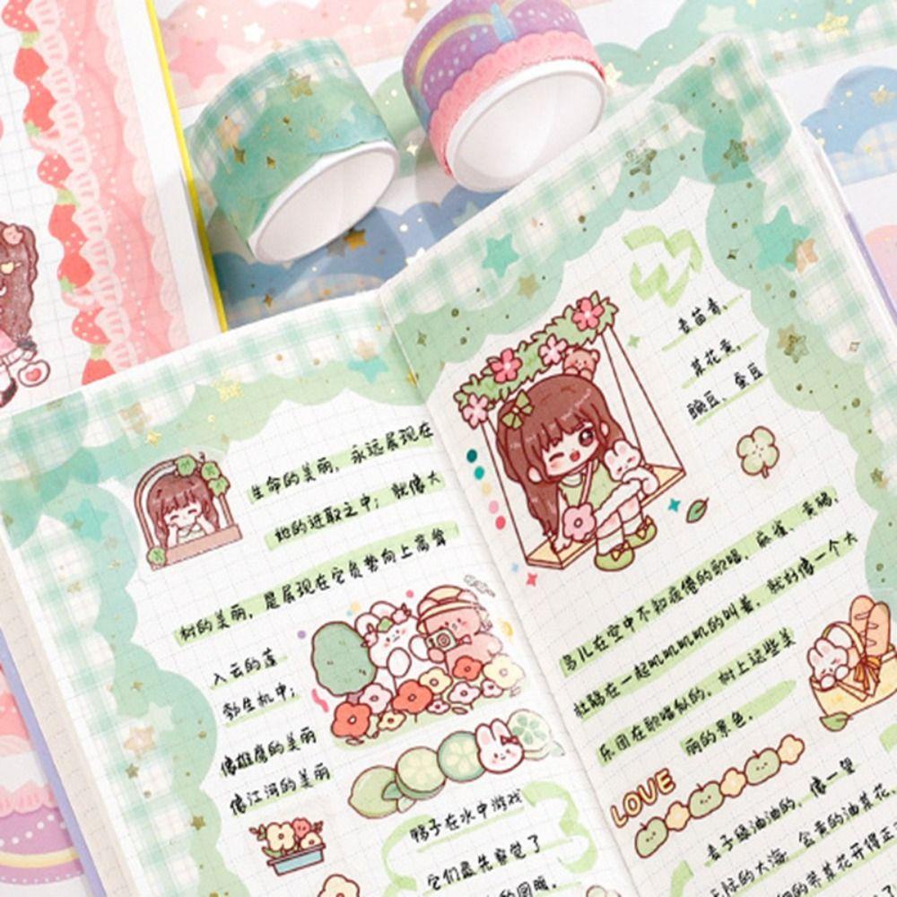 10 Rolls/Set Washi Tape Washi Tape Decorative Stickers DIY Material Hand Account INS Little Fresh Girl Heart Scrapbooking Creative Stationery Cute Fresh Literary High Quality New