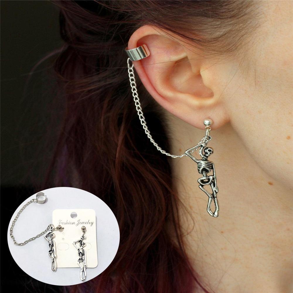 Package included: 1 pair of Skull Earrings Skull Earrings Ear Clip Ear Stud Tassels Chain Drop Earring Punk Rock Skeleton Gothic Vintage Hip Hop Dangle Ear Cuff Wrap Ear Clip Fashion Jewelry