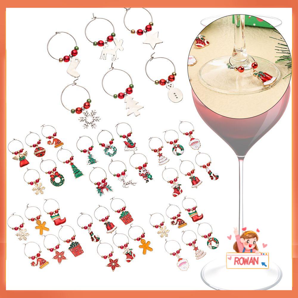 R-flower 6Pcs Cincin Dekorasi Piala Natal Rumah Xmas Liontin Produk Tahun Baru Christmas Cup Ring