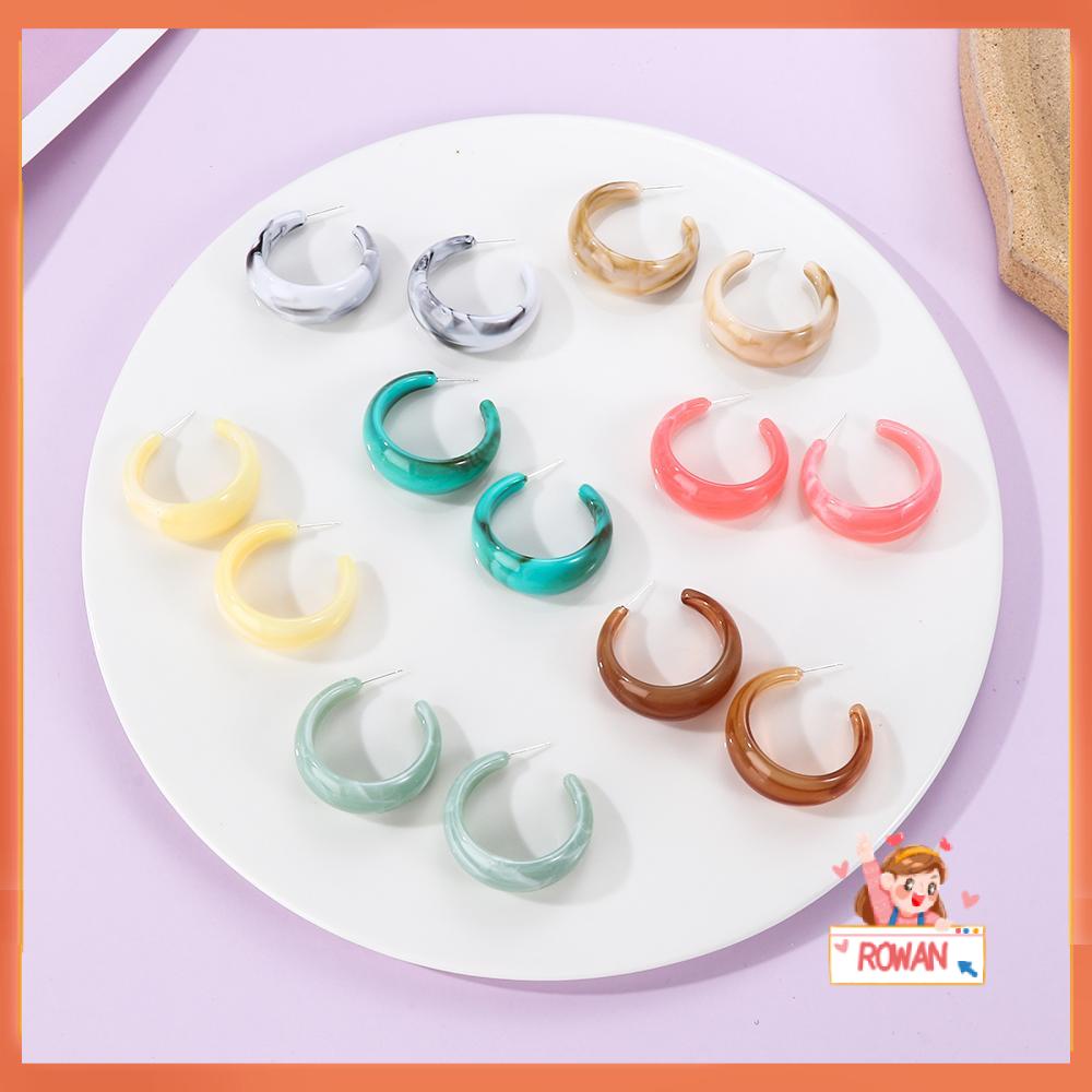 Detail R-flower Acrylic Colorful Earrings Statement Hadiah Untuk Wanita Hoop Menjuntai Earrings Asam Asetat