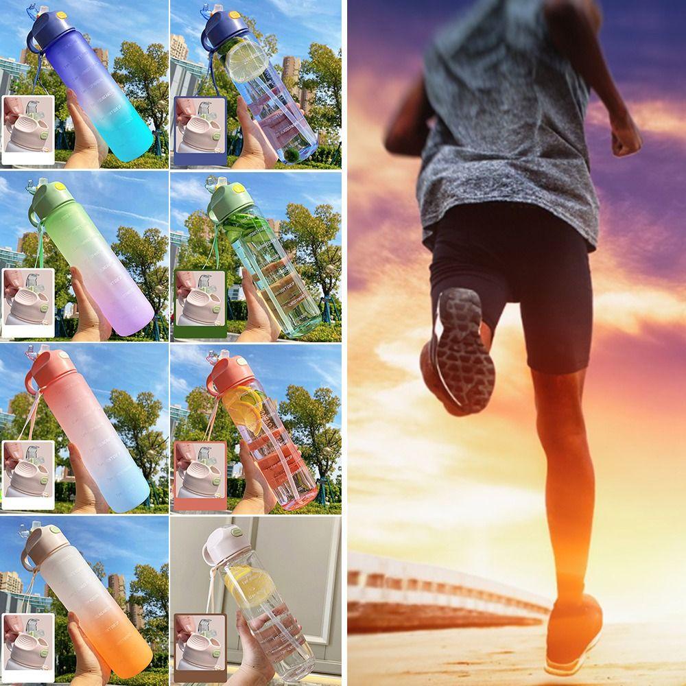 Botol Air Olahraga 1000ml dengan Penanda Waktu untuk Perjalanan Kebugaran Luar Ruangan Portabel Peralatan Minum Anti Bocor Plastik BPA Gratis Minum Cangkir
