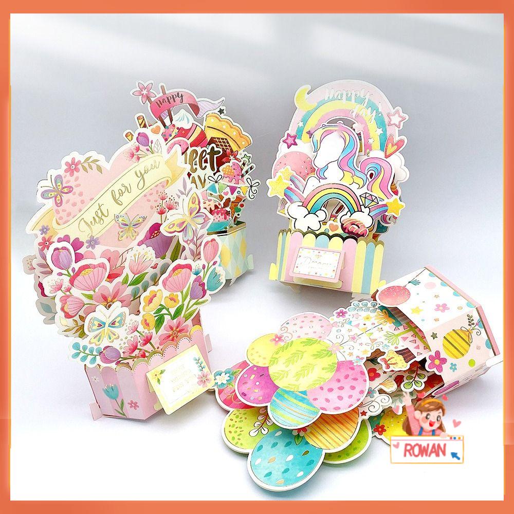 R-FLOWER Buket Pop Up Untuk Ulang Tahun Kartu 3D Rose Sunflower Happy Mother's Day