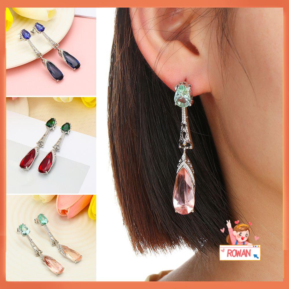 Detail R-flower Drop Earrings Perhiasan Pernikahan Bling Baru Aquamarine