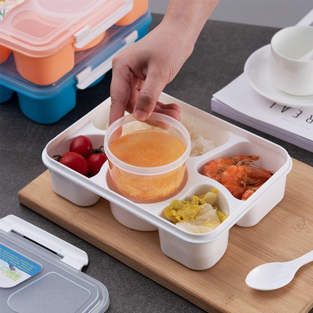 Perlengkapan Rumah > Peralatan Dapur > Tempat Penyimpanan Makanan > R-FLOWER Five Grids Lunch Box Mudah Dibersihkan Sealed Waterwash Microwave Bento Box