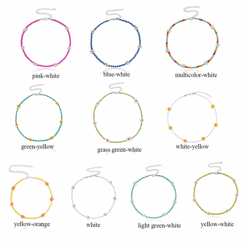 Karena perbedaan cahaya dan layar, warna item mungkin sedikit berbeda dari gambar. Kalung Bunga Warna-warni Kalung Manik-manik Choker Buatan Tangan Wanita Perhiasan Pantai Bunga Warna-warni