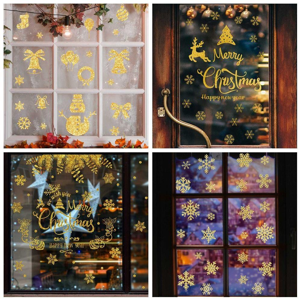 Stiker Selamat Natal Stiker Golden Snowflake Santa Clause Snowman Decals Static Clings Static Clings Static Static Clings