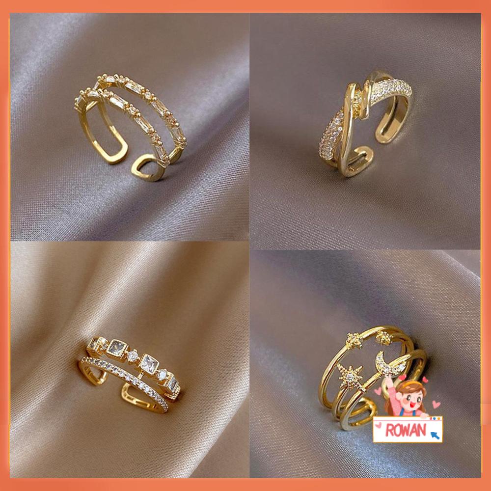 Catatan: Karena efek cahaya dan monitor, warna mungkin memiliki perbedaan ringan. Pembukaan Cincin Zirkon Jari Perhiasan Berlapis Emas Lapisan Ganda Fashion Baru Cincin Mewah Gothic Pesta Pernikahan Sederhana Wanita Gadis