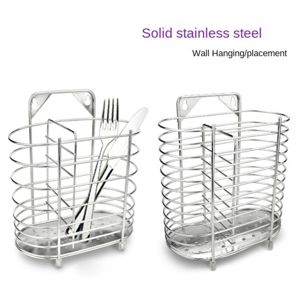 Perlengkapan Rumah > Organizer Rumah > Box, Tas, & Keranjang Penyimpanan > R-FLOWER Tempat Sumpit Stainless Steel Tahan Lama Alat Dapur Rumah Tangga Kotak Penyimpanan Sendok Garpu Pengering Drainer Rack