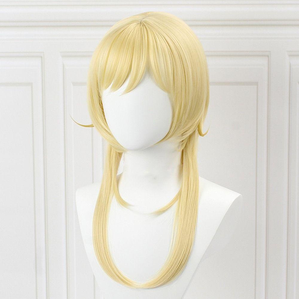 Daftar Paket: 1 pcs wig braid Rambut Wig Sintetis Rambut Genshin Dampak Layar Kosong Tahan Panas Cosplay Traveler Aksesori Emas Panas