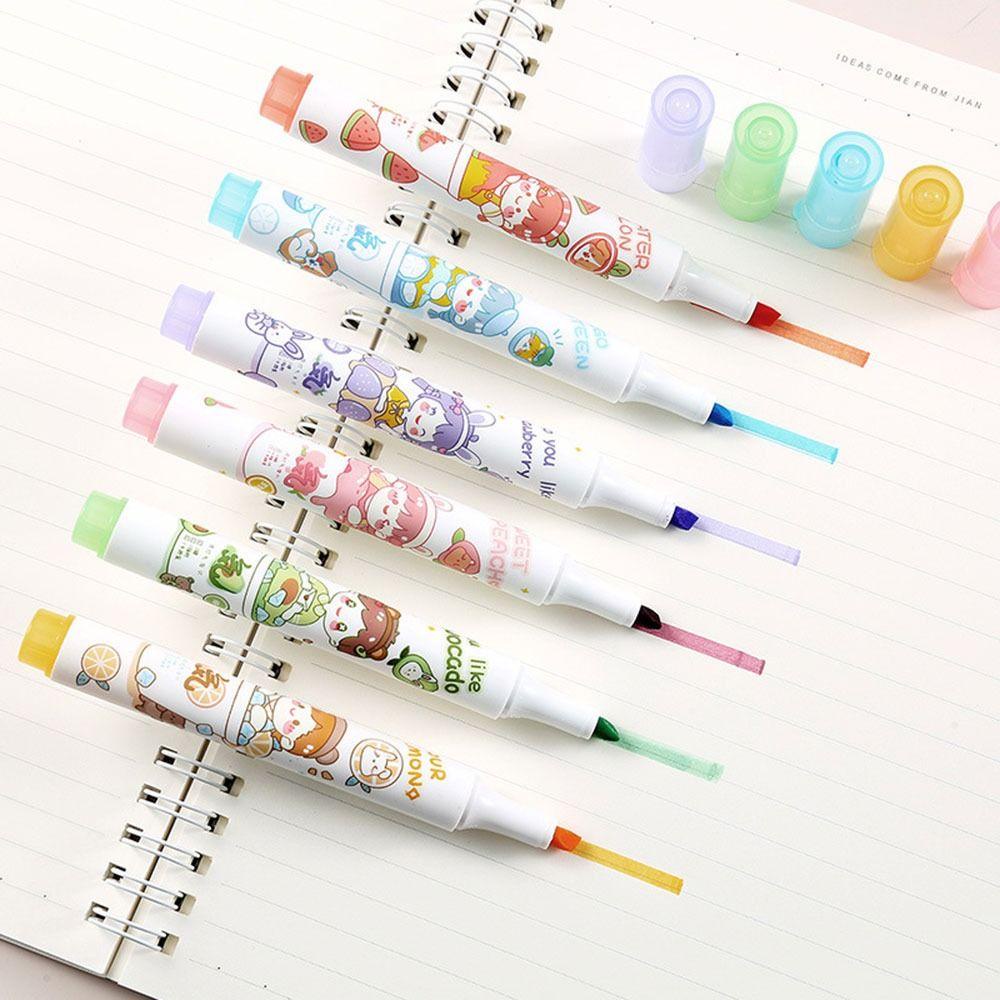 1 x Set Pena Highlighter (6 Warna) Highlighter Pena Set Poin Kunci Spidol Warna Pena Perawatan Mata Alat Tulis Menggambar Grafiti Alat Tulis Kreatif Perlengkapan Kantor Alat Tulis Kartun Tampan