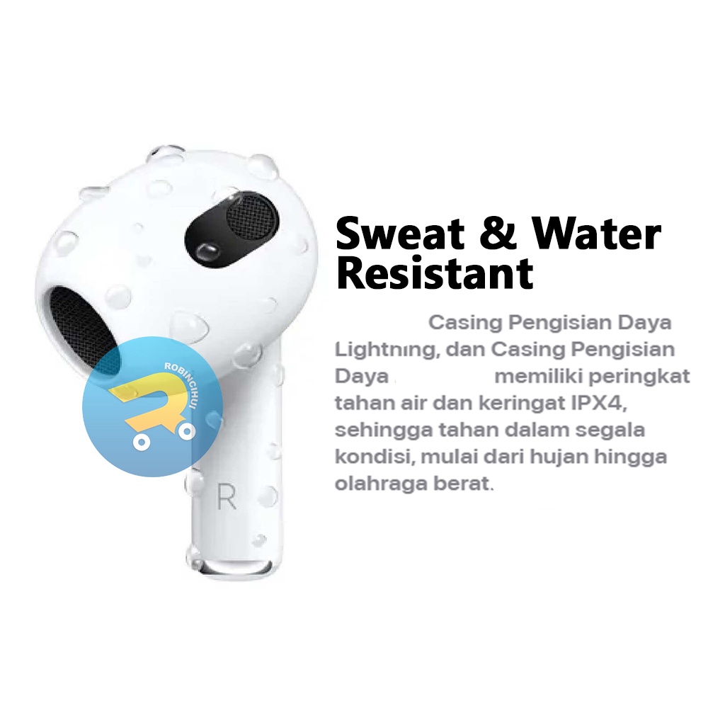 ISI PAKET : - 1x Unit R-Pods 3 Charging Case - 1x Box With Logo - 2x R-Pods Gen3 - 1x Wireless Charging Case - 1x Manual Book - 1x Lightning Cable