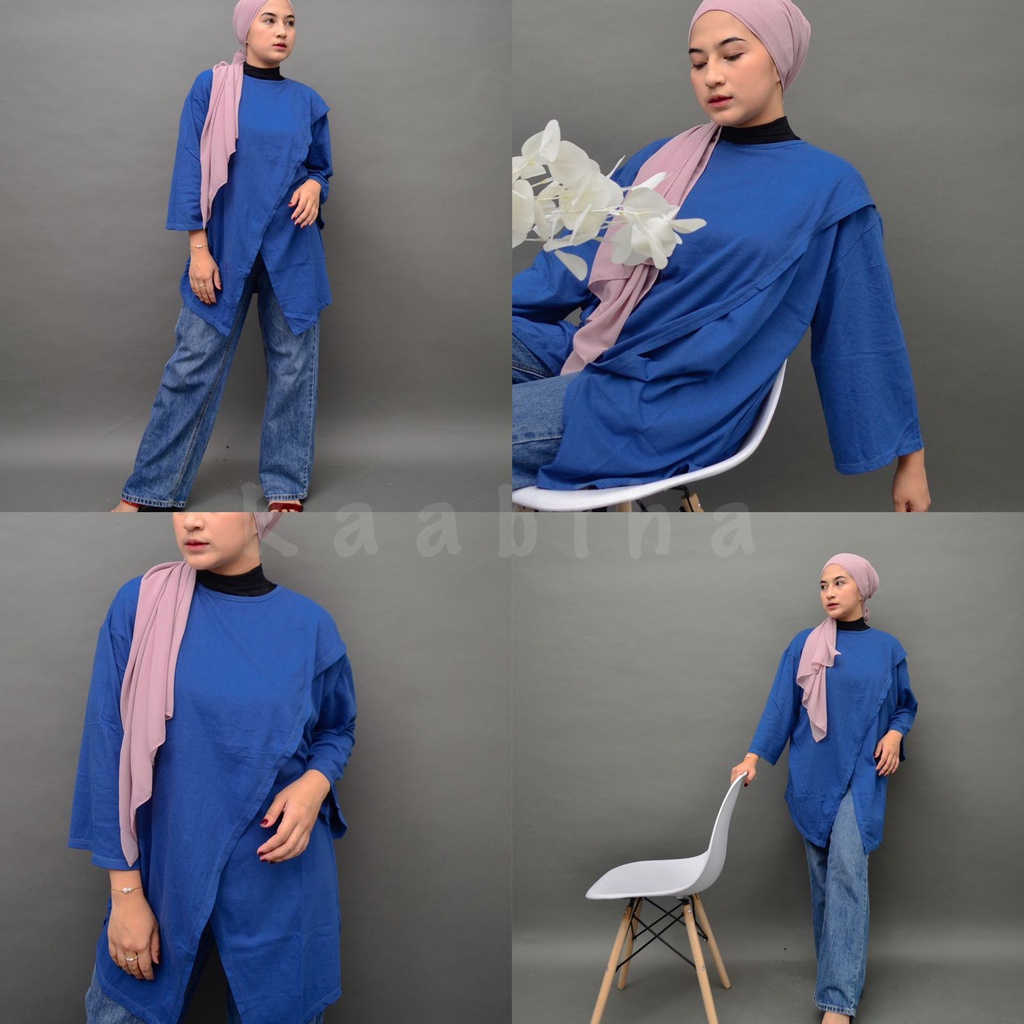 Detail RAABIHA Maura Tunik Tshirt I Tunik Korea I Kaos Tunik Silang