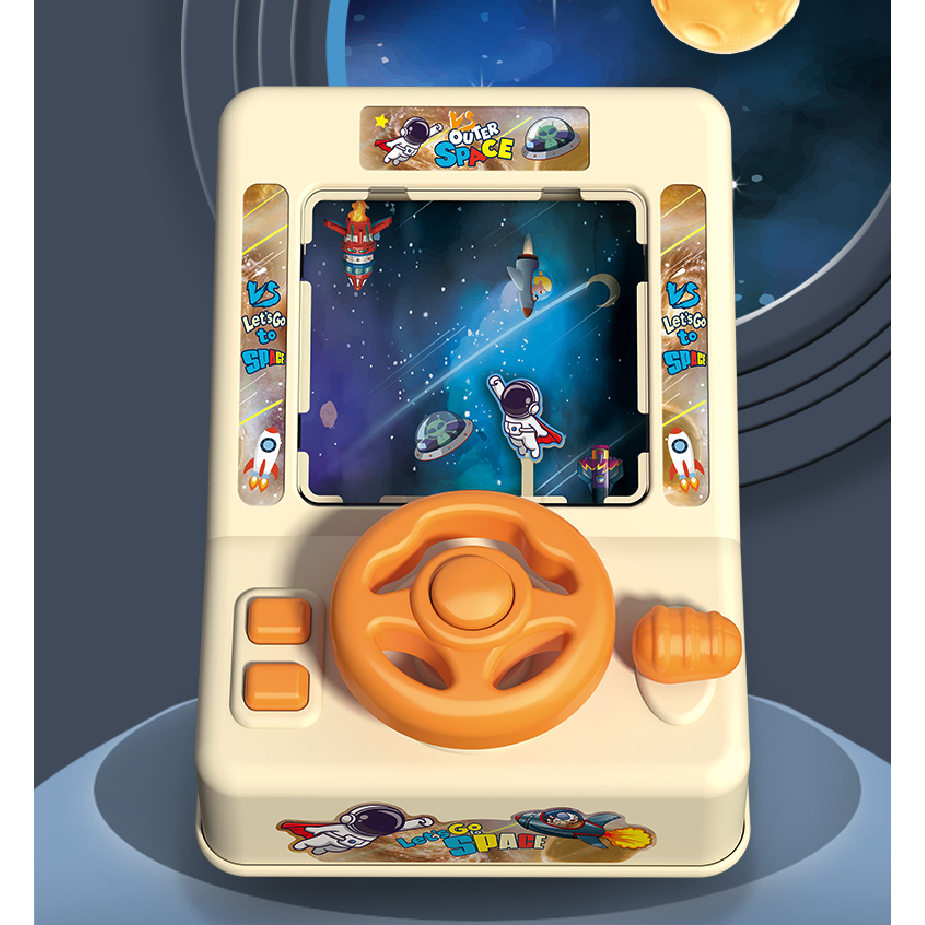 Big Racing Space merupakan mainan yang dapat melatih ketangkasan anak. Permainan yang meharuskan si kecil menjadi seorang astronot yang mampu menghindari pesawat luar angkasa lain agar tidak tertabrak dan dilengkapi dengan beberapa fitur pendukung seperti : gambar akan berhenti, ada sound effect ketika menabrak pesawat luar angkasa lain, pengaturan level menggunakan tuas. Bentuk yang seperti Mini Arcade Game yang melengkung sehingga tidak membahayakan anak ketika bermain dan dapat mengalihkan anak dari gadget. Selain bisa dinyalakan dengan mengunakan baterai AA mainan ini juga bisa dinyalakan langsung dengan kabel USB yang bisa di colok ke power bank maupun listik langsung, sehingga lebih irit tanpa harus membeli baterainya lagi.