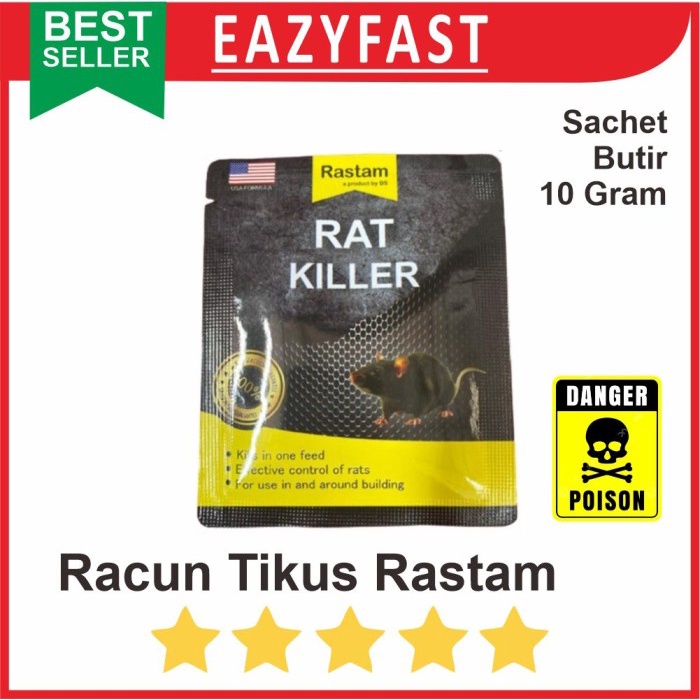 Racun tikus RASTAM by BS PERHATIAN : RACUN INI BERBAHAYA , BAHAN AKTIF YANG KERAS. JAUHKAN DARI ANAK KECIL DAN HEWAN PELIHARAAN. TIKUS MATI DI TEMPAT DAN KERING. BISA UNTUK HAMA LAIN, YANG MENGGANGGU SEPERTI BABI HUTAN DSB. BERGARANSI, TIDAK MATI RETUR BARANG.