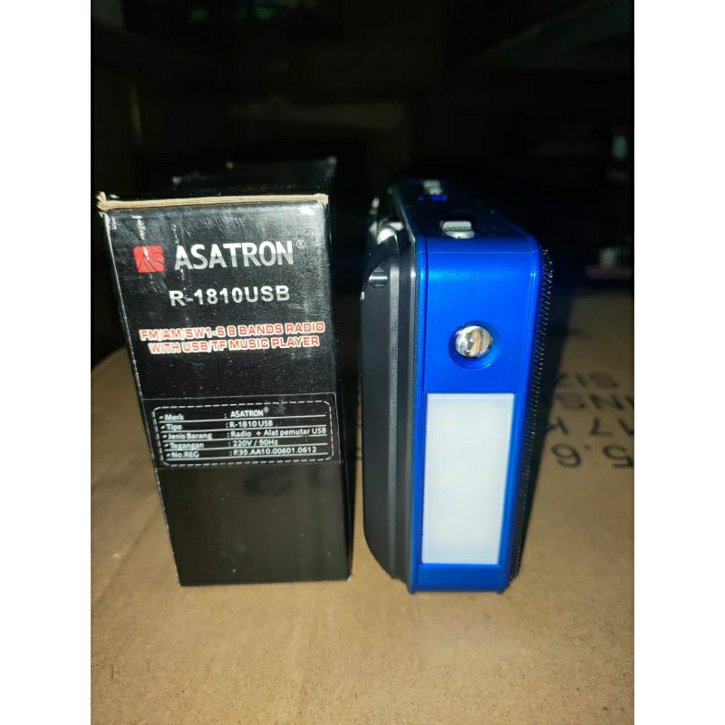 Radio Asatron R-1810 USb adalah Radio mungil dengan fungsi radio band (AM/FM dan SW1-6 ) dengan lampu emergency yang lebih lengkap dan terang dibanding dengan series sebelumnya R-10.