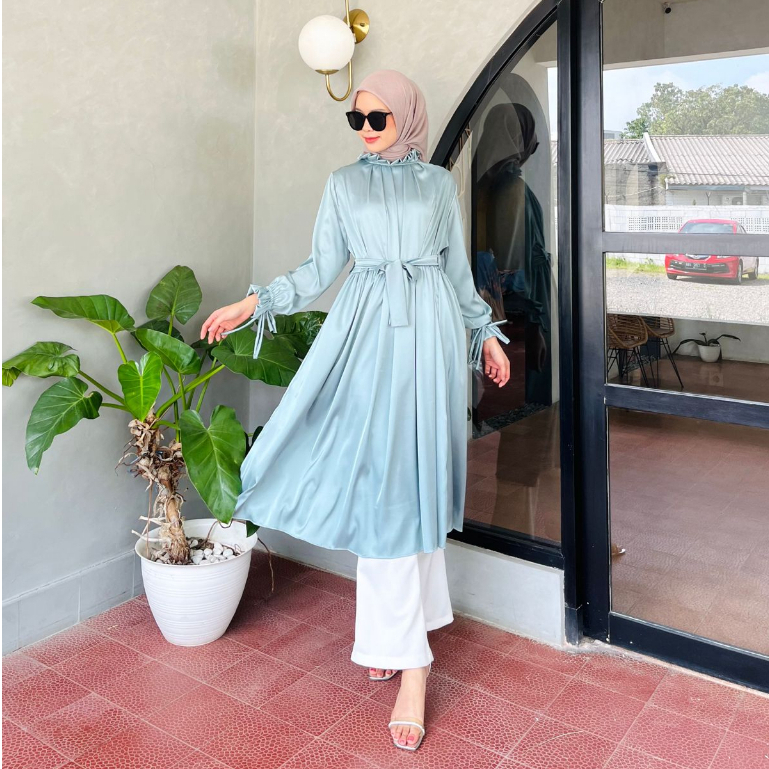 🌙LD: 110 cm 🌙Panjang Baju: 115 cm 🌙Lingkar ketiak: 49-50 cm 🌙Panjang Lengan: 55 cm 🌙Lingkar Lengan: 40 cm 🌙Bahan: Premium armany silk, mengkilap dan mewah banget🤩 🌙Variasi: Tangan karet, kerah turtleneck, tali di bagian pinggang yg bisa diadjust 🌙Warna: Nude, Matcha, BW, Grey