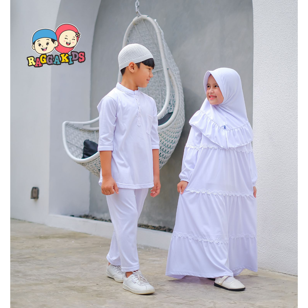 Fashion Muslim > Pakaian Muslim Anak > Pakaian Muslim Anak Lainnya > Raggakids Gamis putih Anak premium RG52 bahan adem 1-13 tahun | Setelan koko anak putih dan celana free peci