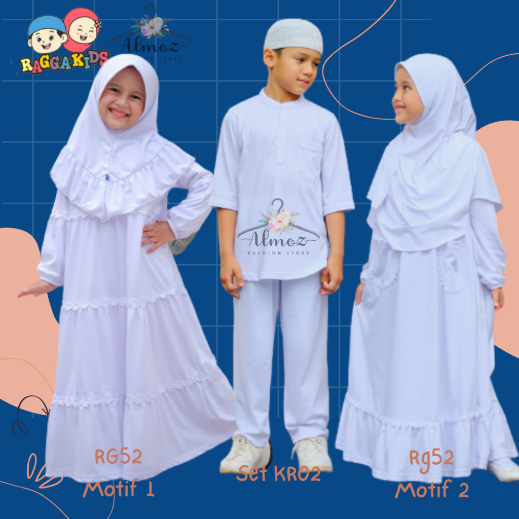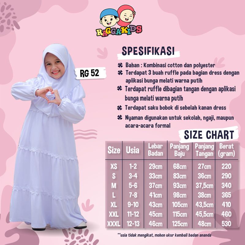 Detail Raggakids Gamis putih Anak premium RG52 bahan adem 1-13 tahun