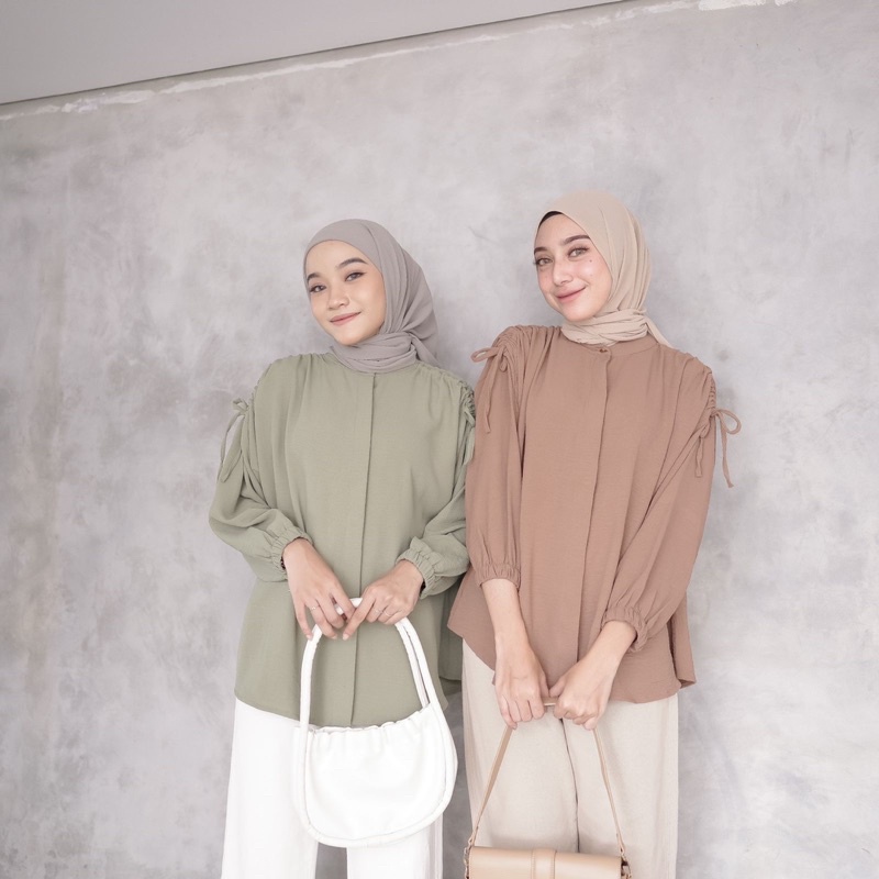 Your browser does not support the video tag.Video perkenalan produk RAINA Gavi BLOUSE SERUT BAHU Crinckle LD 120/kemeja serut bahu/blouse lengan serut viral/heksa blouse lengan serut. Sumber: Shopee.