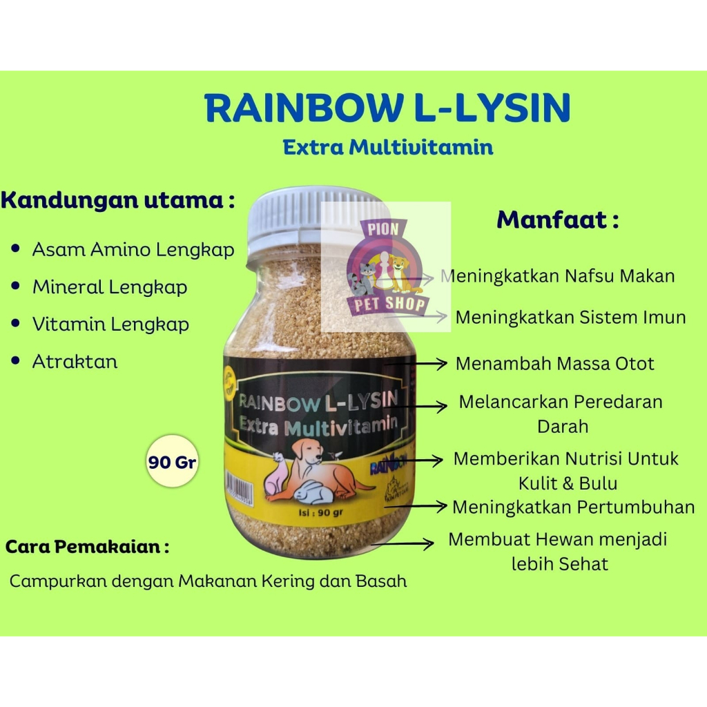 Rainbow L - Lysine Extra Multivitamin 90gr Untuk Kucing Anjing