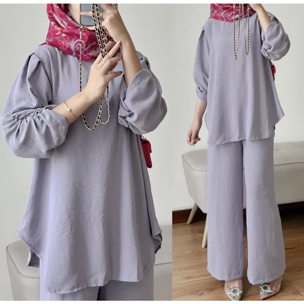 Detail Raisa One Set Lengan Panjang Crinkle Airflow Daily Set Terbaru Setelan Wanita Kekinian