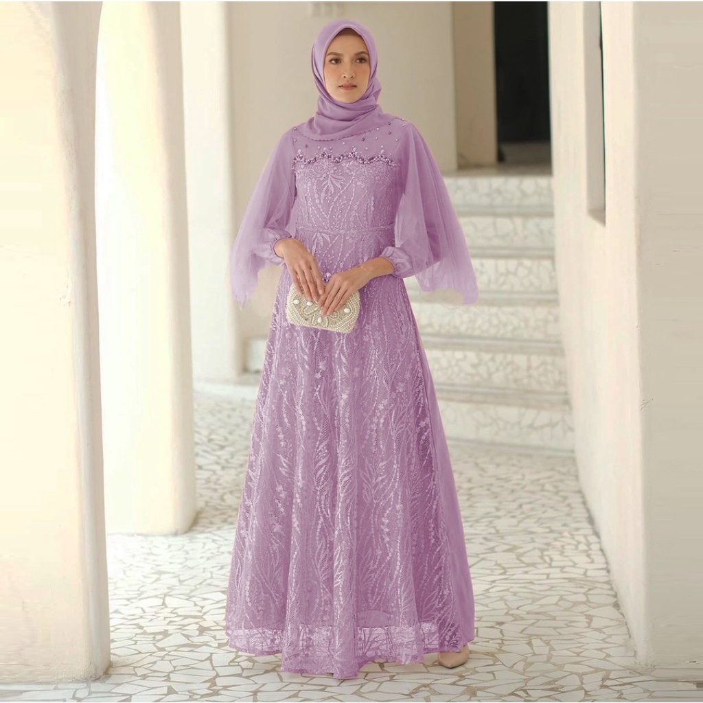 Raisha Dress Brukat Tile Apply Mutiara Gamis Shelomita Brokat Luna Dress Tille Gamis Kondangan Gamis Brukat Remaja Muslimah Cantik Outfit Kondangan Gaun Pesta Mewah Dress Bridesmaid Seragam Pernikahan Dress Party Terbaru Dress Muslimah Jumbo xxl ld 120