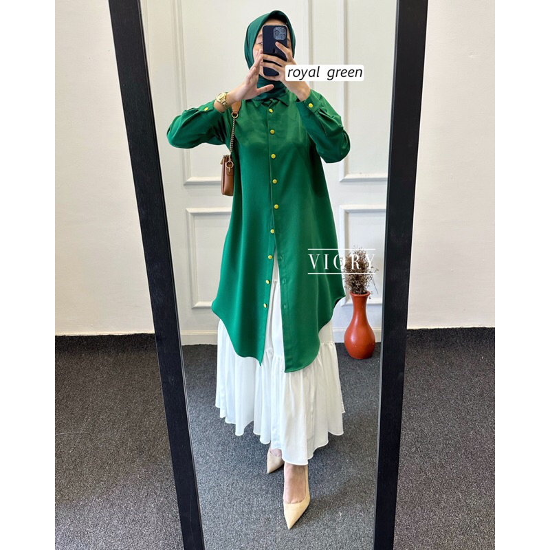 Panggilan kepada pecinta tunik! Bagian depannya full kancing hidup dan di sisi kanan ada saku yg cukup dalem ya.