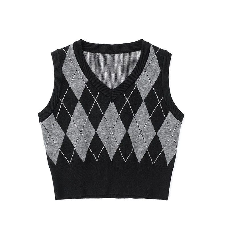 Detail pasti rajut Sweater Rajut Vest Crop Wanita Kotak SILANG