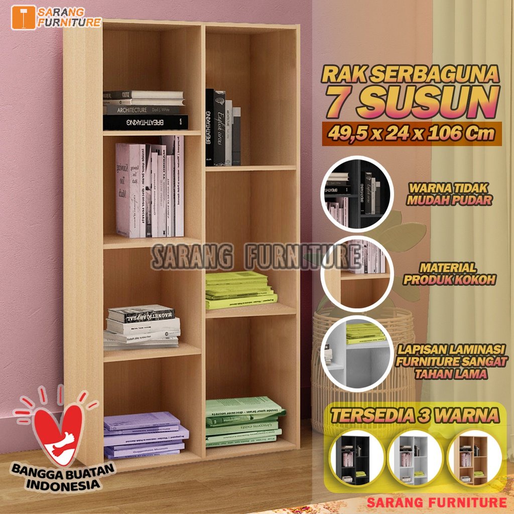 RAK BUKU MINIMALIS SERBAGUNA RSG 7 SUSUN: 49,5 X 24 X 106Cm RSG 11 SUSUN: 73,5 X 24 X 106 Cm