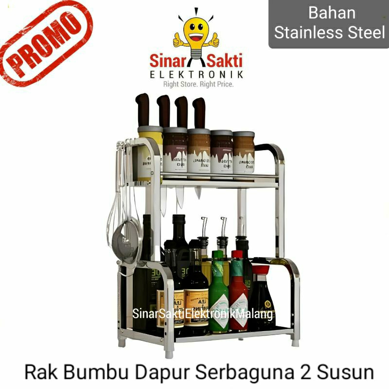 Rak Bumbu Dapur 2 Susun Meja Makan Stainless Steel Serbaguna