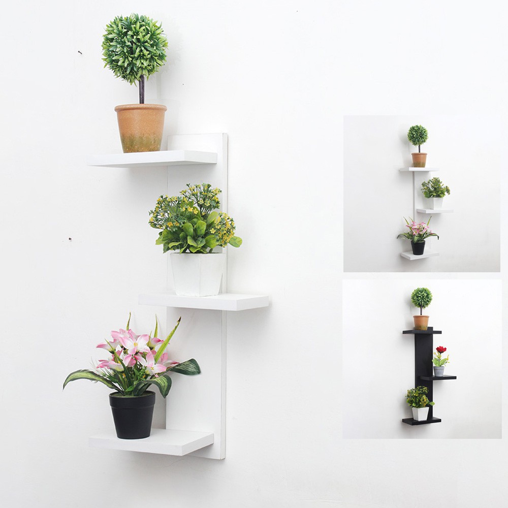 Rak Bunga Hias Dinding Susun 3 dari Kayu untuk Hiasan Dinding Rumah Minimalis Modern