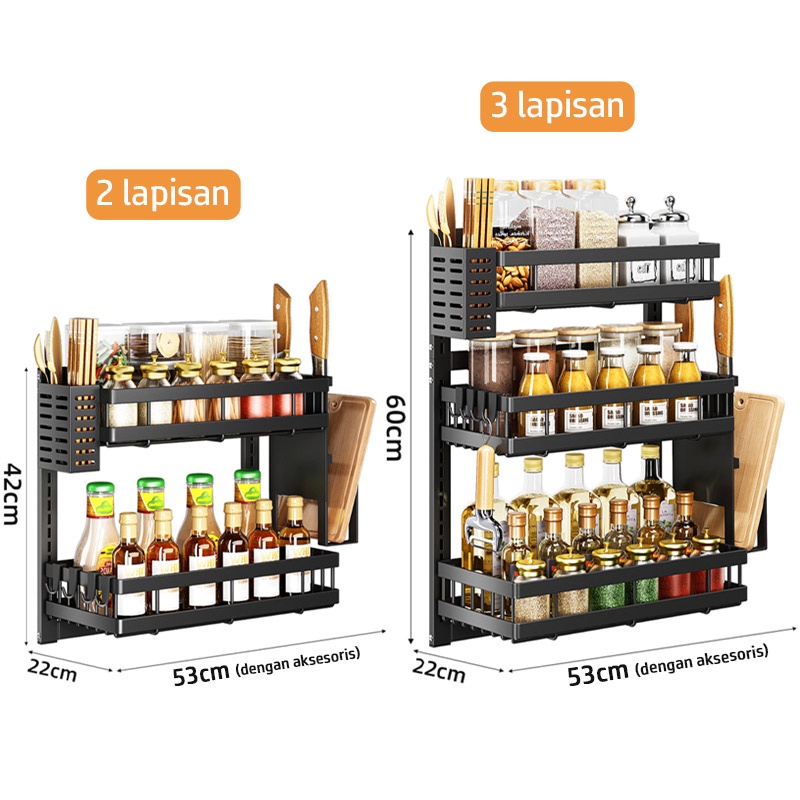 Perlengkapan Rumah > Peralatan Dapur > Rak Dapur > Rak Dapur multifungsi Rak bumbu dari baja tahan karat yang dipasang di dinding rak penyimpanan multi-lapis