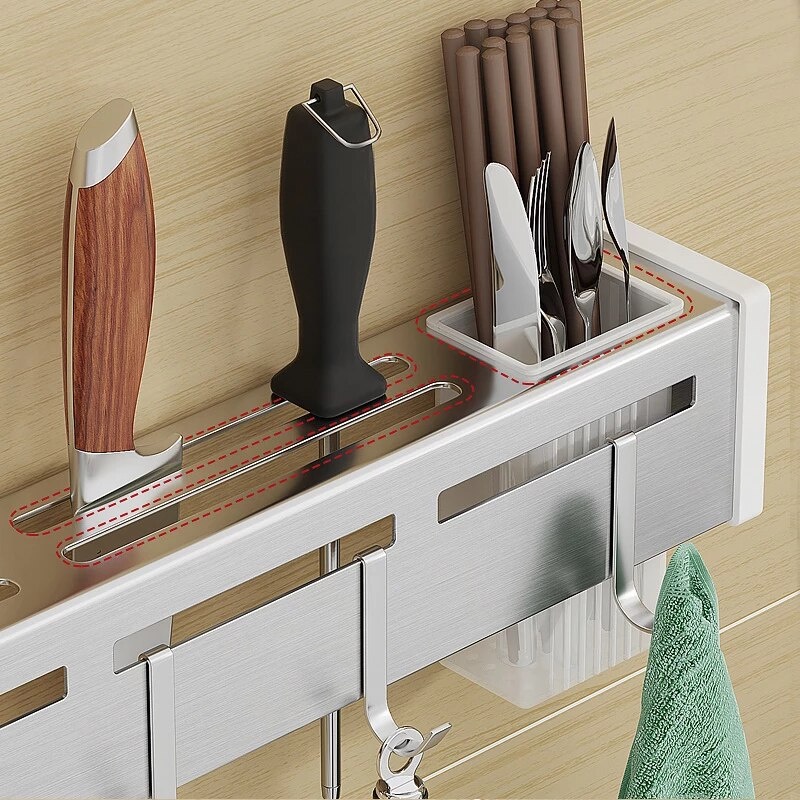 Deskripsi Produk : -Desain terampil, penampilan elegan, struktur stabil dan tahan benturan -Desain terpisah, posisi ketinggian dapat diatur, bisa dipasang sesuai keinginan. -Desain kait bergerak memungkinkan kait bergerak ke kiri dan kanan untuk memudahkan penyimpanan. -Penahan pagar pembatas untuk mencegah benda jatuh. -Sudut dipoles dan halus mencegah goresan tangan. bor / bebas bor 2 metode pemasangan. produk sudah termasuk lem.