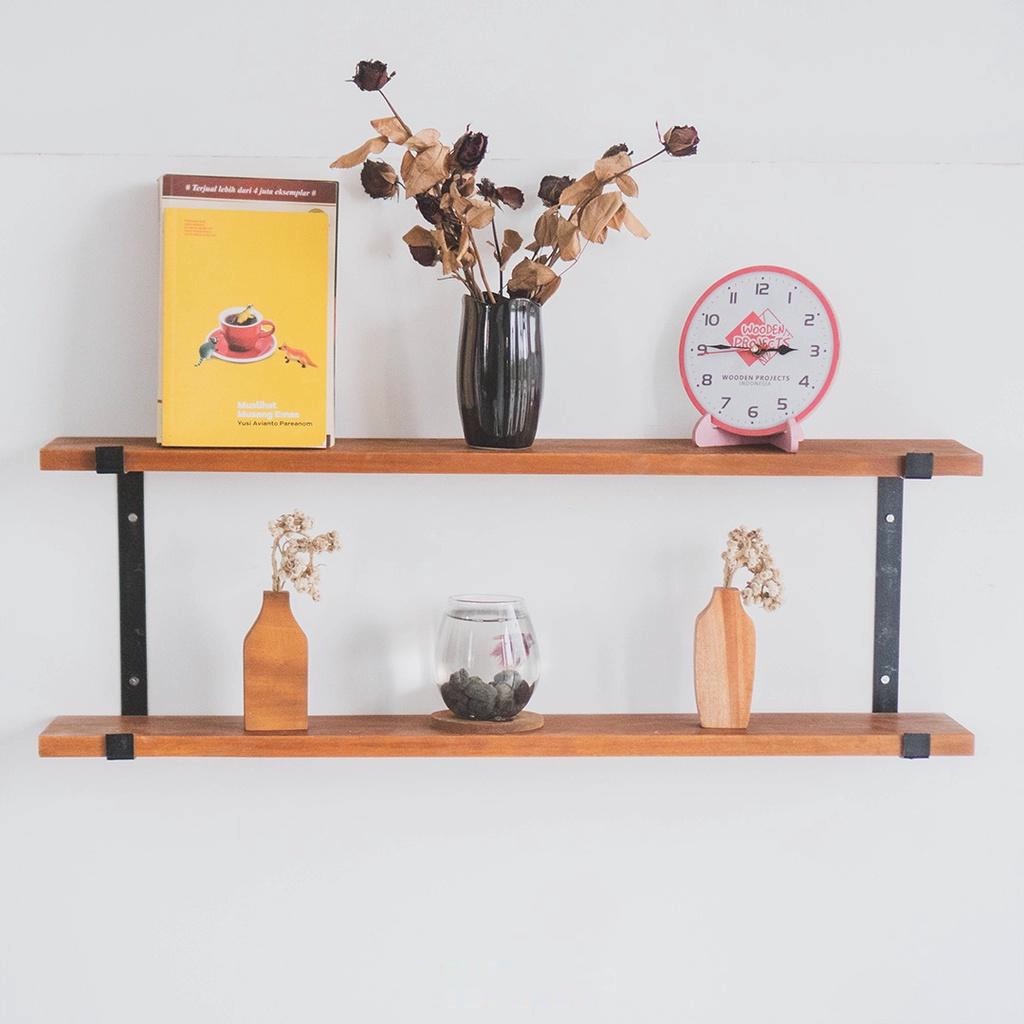 Detail Rak Dinding Gantung Kayu Dekorasi Hiasan Kamar Minimalis Rumah Storage Buku Tempel Gantung Melayang Ambalan Organizer - RST