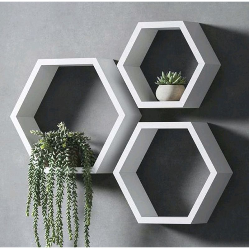 Detail RAK DINDING SEGI 6 MINIMALIS HEXAGONAL DINDING MELAYANG