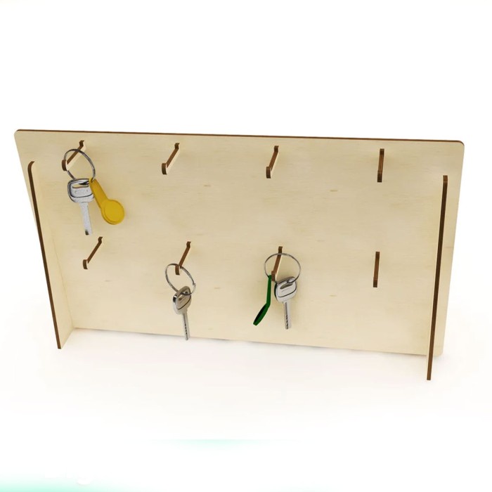 Rak Gantungan Kunci berbahan dasar kayu Plywood ini berfungsi sebagai tempat dekorasi gantungan kunci, kunci rumah dan masih banyak lagi, membuat tampilan gantungan kunci yang dipajang terlihat lebih menarik dan tertata dengan rapih.