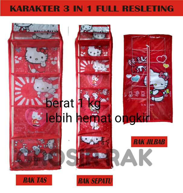 Detail Rak gantung 3in1 karakter ful resleting /HBO HSO HJO KARAKTER/Set Rak tas/termurah