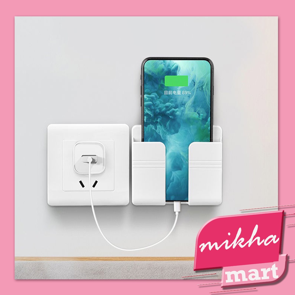 Fitur : 1. Terbuat dari bahan ABS berkualitas baik, tahan lama 2. Bentuk yang simple, dapat ditempel di dinding untuk menghemat ruang 3. Bisa menampung handphone, remote control, dan kabel kabel terurai, sangat praktis! 4. Membantu Anda untuk mempermudah menemukan remot/hp tidak perlu untuk mencari cari dimana anda meletakkan hp/remot 5. Mencegah hp/remot tertindih, terinjak bahkan hilang 6. Pemasangan mudah, cukup tempelkan pada dinding atau permukaan yang rata tanpa bor. 7. Dapat di pasang di sebelah stop kontak tanpa khawatir kabel kurang panjang untuk diisi daya, terdapat lubang charger di bawah.