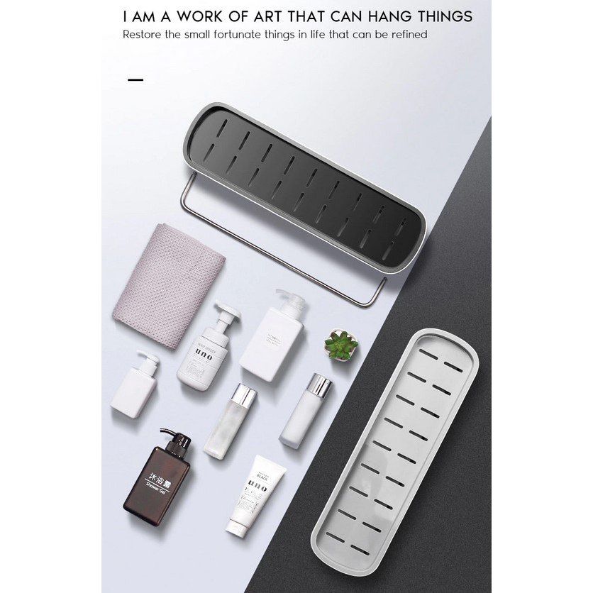 Fitur Mudah Dipasang Anda tak perlu takut kesulitan untuk memasang rak organizer. Anda dapat memasang rak dengan menggunakan perekat yang sudah tersedia atau menggunakan paku ke dinding di kamar mandi Anda.
