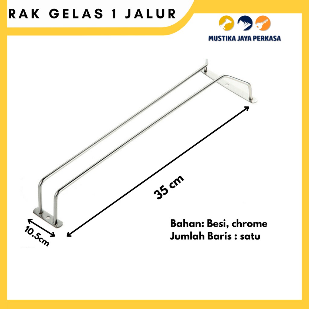 Nama Barang: Rak Gelas Wine Gantung Minibar Stainless (1 Jalur) Wine Glass Holder / Rak Gantung Gelas Wine Single Tipe: Bar glass rack/hanging glass rack Ukuran: L350 X W105 X 65MM Bahan: Besi, chrome jumlah Baris : satu