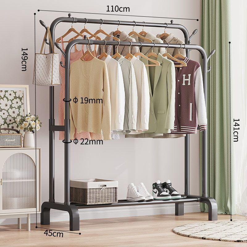 Gantungkan pakaian Anda pada Gantungan Pakaian Double ini. Selain memiliki desain yang elegan, gantungan pakaian ini dilengkapi dengan tempat sepatu pada bagian bawahnya , sehingga Anda dapat menggantung pakaian ,topi sekaligus meletakkan sepatu kesayangan pada satu tempat. Terbuat dari material besi berkualitas, membuatnya kokoh dan mampu menahan beban yang berat dari sepatu maupun pakaian.