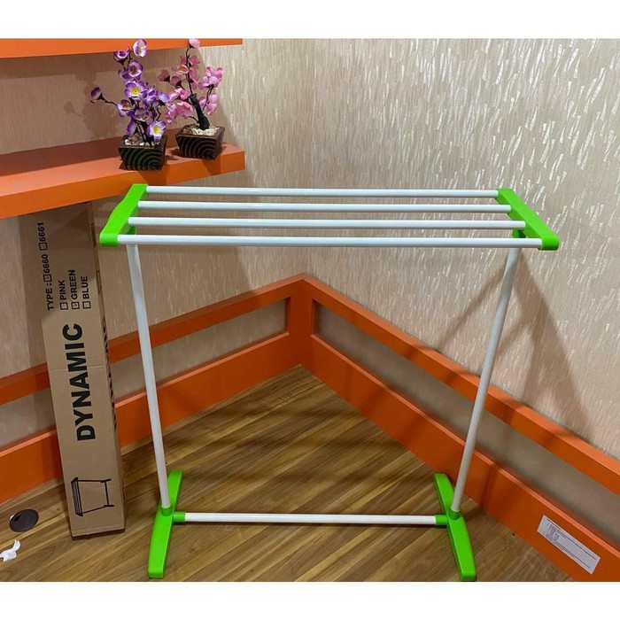 Produk: Rak Jemuran Handuk Dynamic Warna 5 Pipa Type : 6663 Material : Besi coating Warna : Hijau, Pink, Biru Ukuran Produk : 71 cm x 34 cm x 89.5 cm (P x L x T) Ukuran Kemasan : 77 x 13 x 10 cm (P x L x T) Berat Packing : 1600 gram