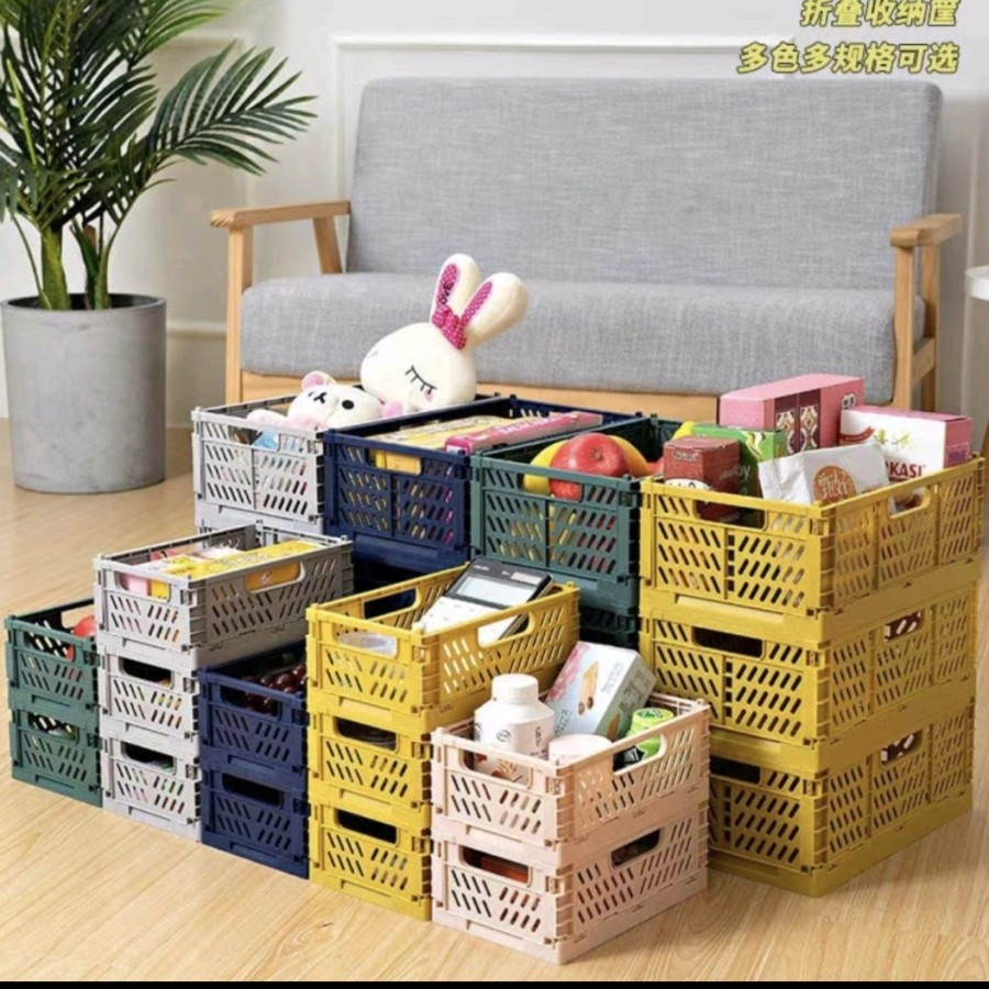 EM Rak keranjang kotak plastik lipat penyimpanan serbaguna