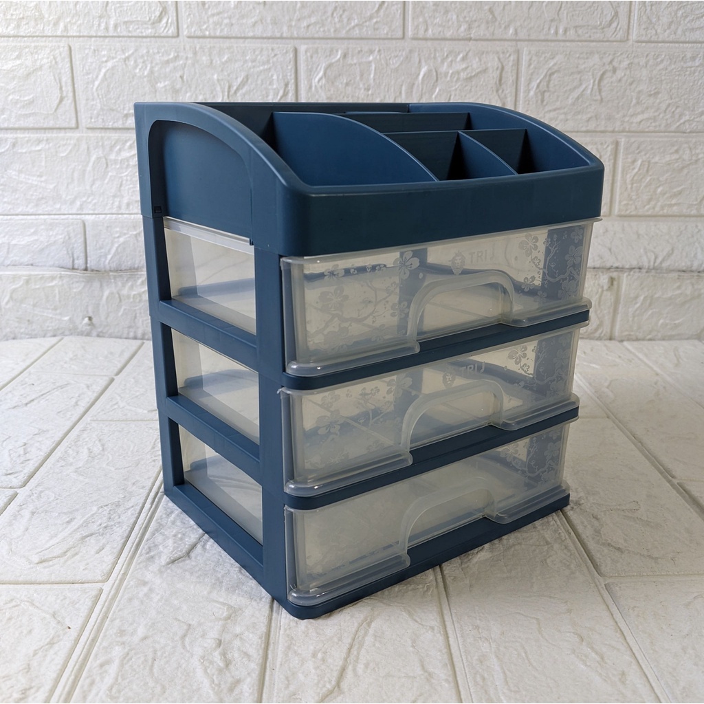 Detail Rak Kosmetik Laci 3 Susun Tri J 3D Sakura / Rak Laci / Rak Kosmetik Plastik Susun 3