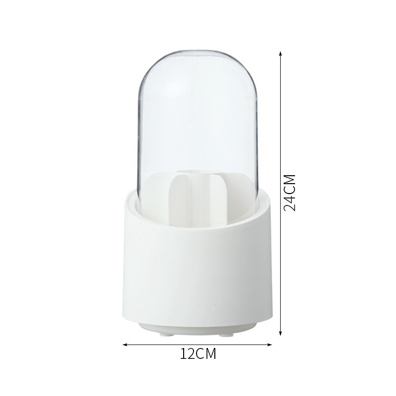 Rak kosmetik make up plastic yang dapat diputar 360 derajat. Design potongan bevel, juga dapat menyimpan alat make up dan alat tulis. Terbagi menjadi 7sekat, terdapat tutup sehingga alat makeup terhindar dari debu dan kotoran ruangan.